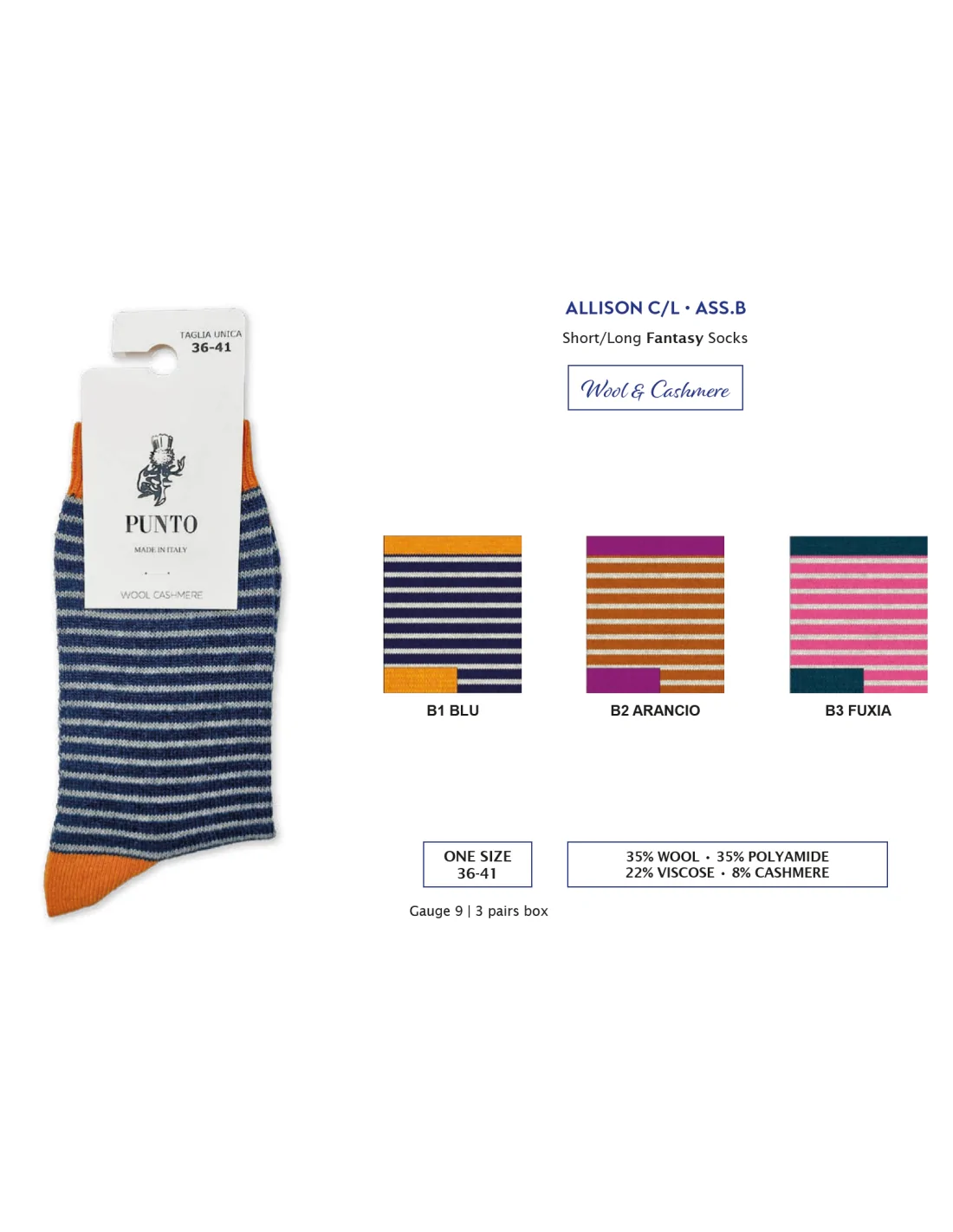 ALLISON L - Calza lunga in fantasia lana & cashmere (scatola da 3 paia)