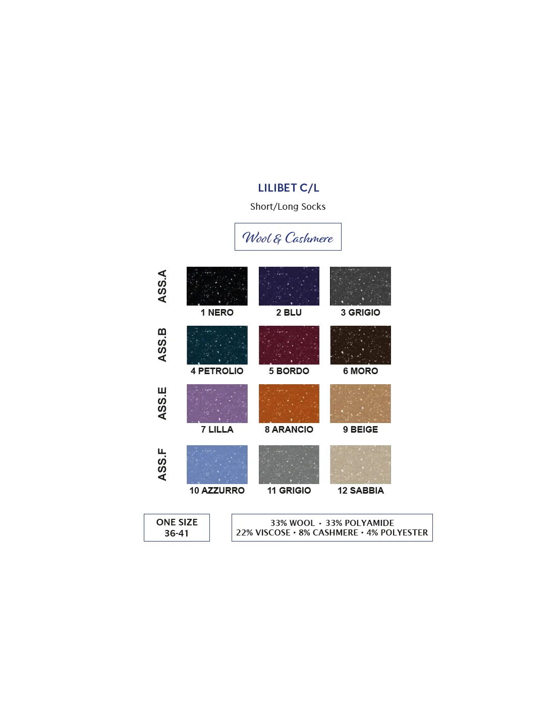 | Colore: | Colori "ASS. A" Colori "ASS. B" |