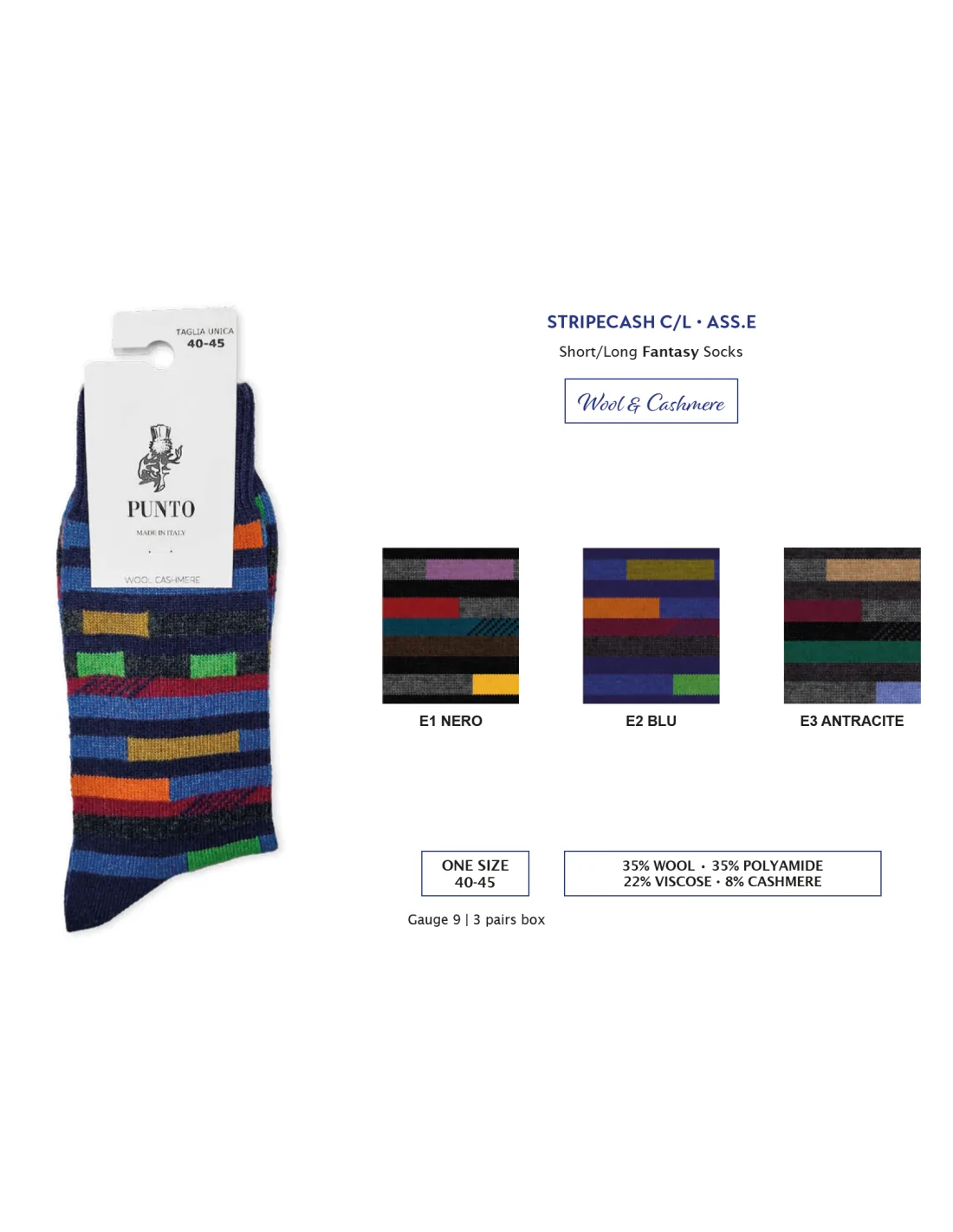 STRIPECASH L - Calza lunga a righe in lana & cashmere (scatola da 3 paia)