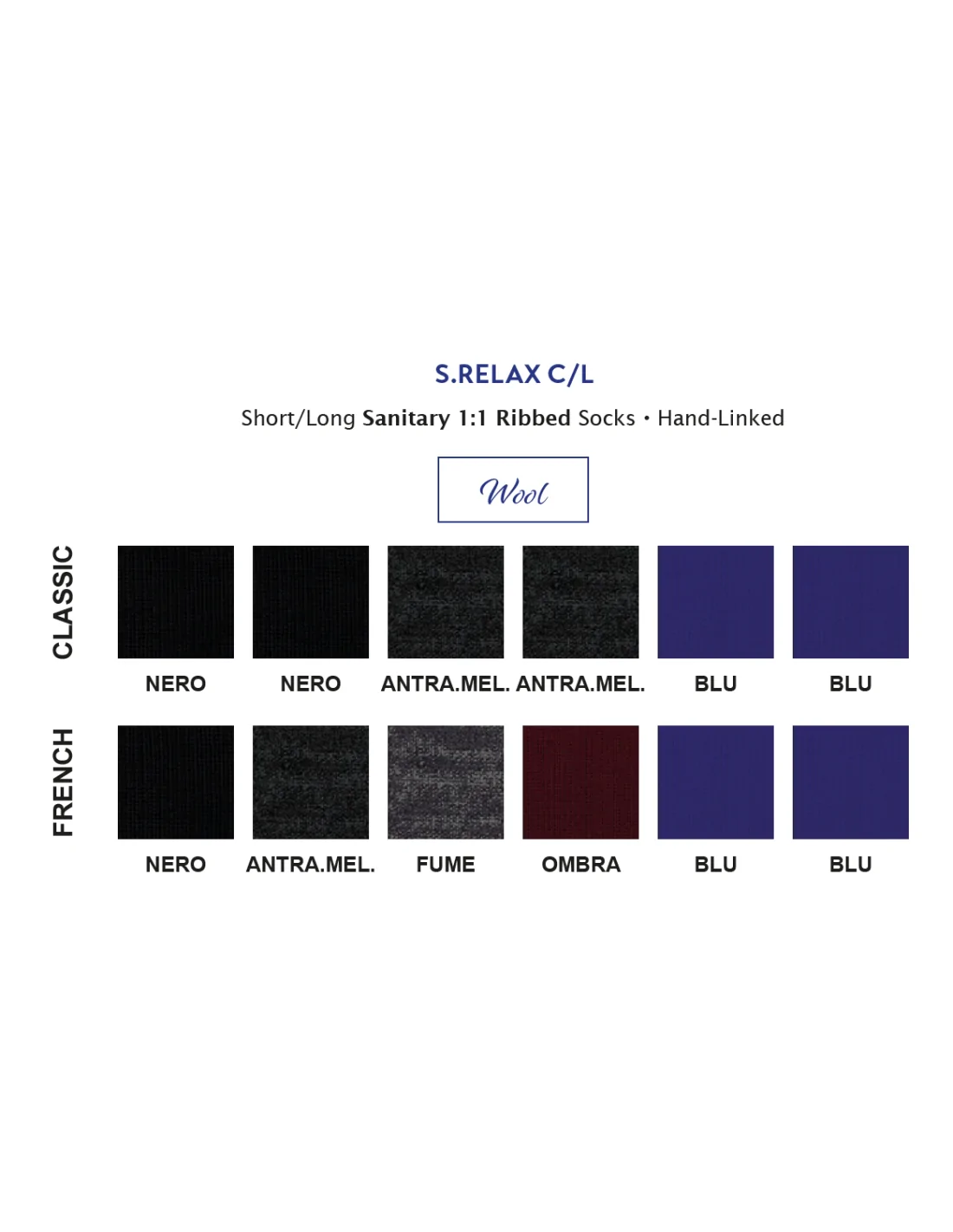 - Classico (2 nero, 2 antracite mélange, 2 blu)